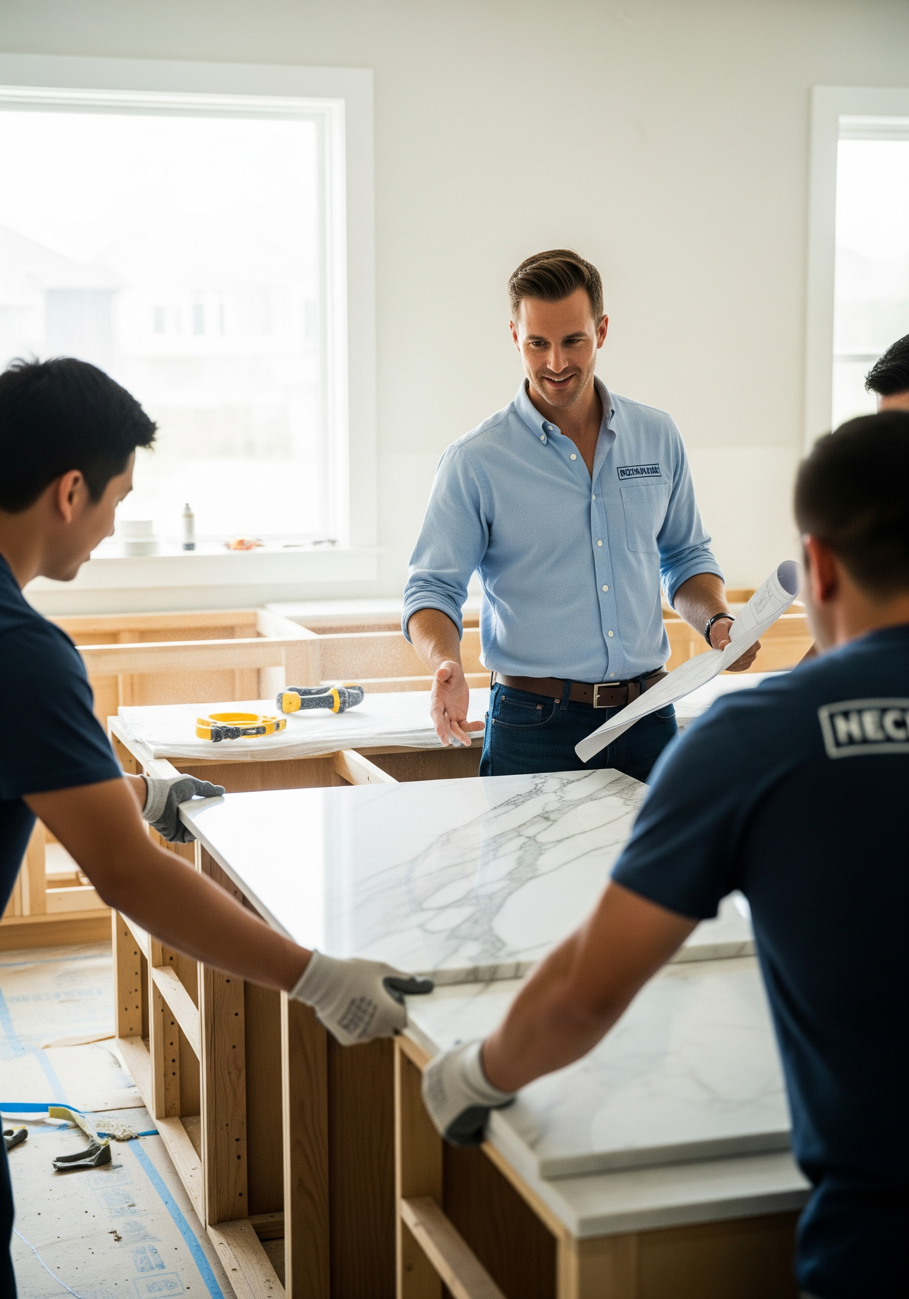 Enhance your kitchen with beautifully fabricated stone countertops designed for durability, style, and daily use.